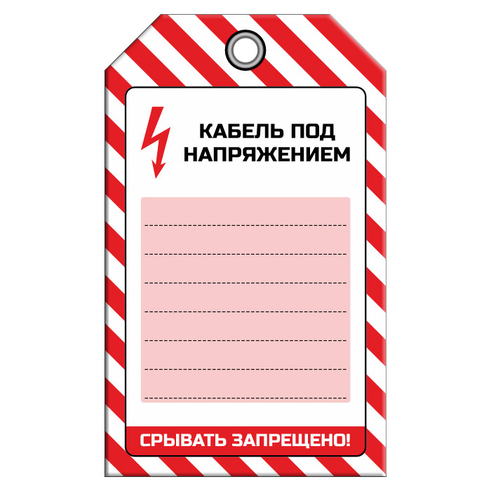 Бирка «КАБЕЛЬ ПОД НАПРЯЖЕНИЕМ», 2 вариант (1 шт., односторонняя, пластик, 70х115 мм) в Железнодорожном купить