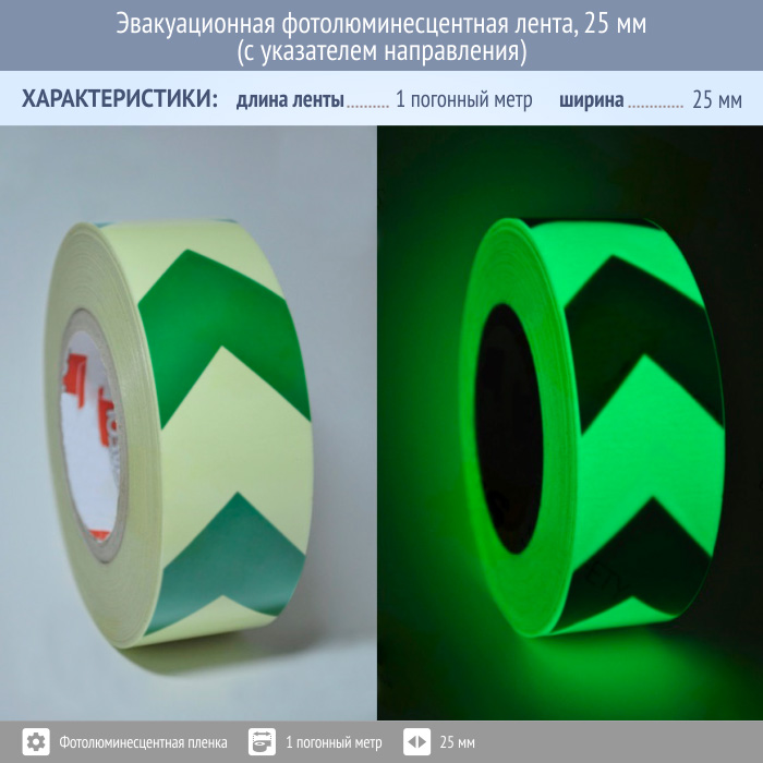 Эвакуационная фотолюминесцентная лента, 25 мм (с указателем направления) в Железнодорожном купить