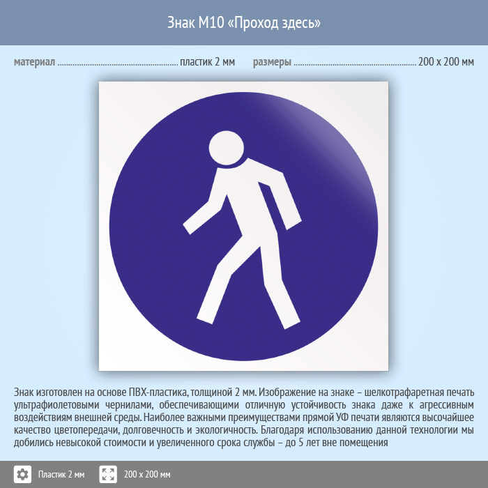Знак M10 «Проход здесь» (пластик, 200х200 мм) в Железнодорожном купить