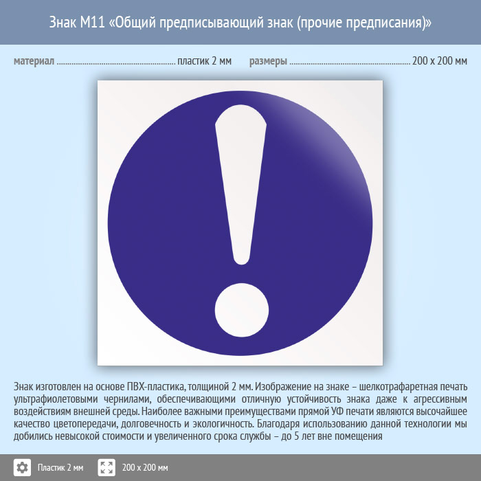 Знак M11 «Общий предписывающий знак (прочие предписания)» (пластик, 200х200 мм) в Железнодорожном купить