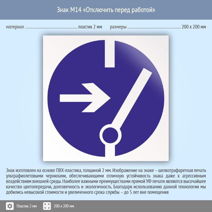 Знак M14 «Отключить перед работой» (пластик, 200х200 мм) в Железнодорожном купить