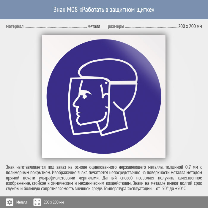 Знак M08 «Работать в защитном щитке» (металл, 200х200 мм) в Железнодорожном купить