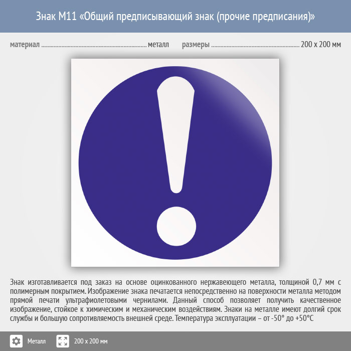 Знак M11 «Общий предписывающий знак (прочие предписания)» (металл, 200х200 мм) в Железнодорожном купить