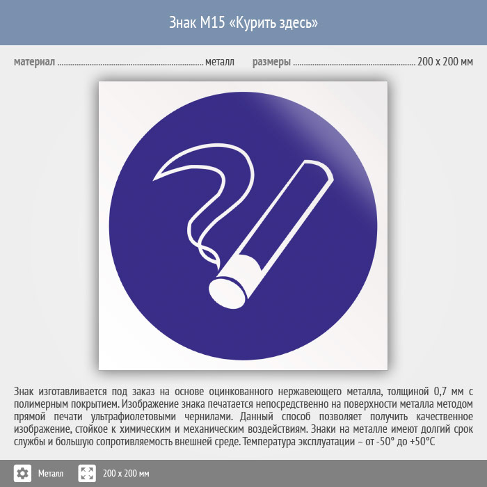 Знак M15 «Курить здесь» (исключен) (металл, 200х200 мм) в Железнодорожном купить