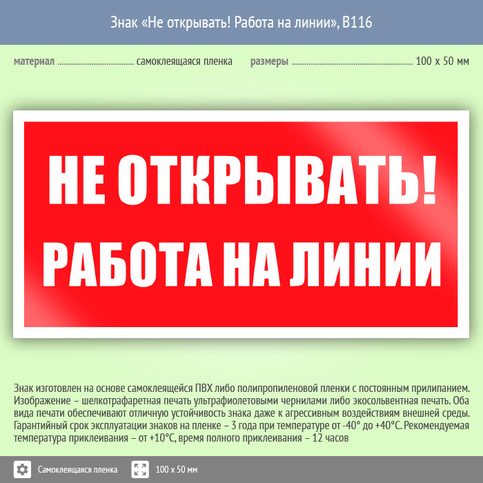 Знак «Не открывать! Работа на линии», B116 (пленка, 100х50 мм) в Железнодорожном купить