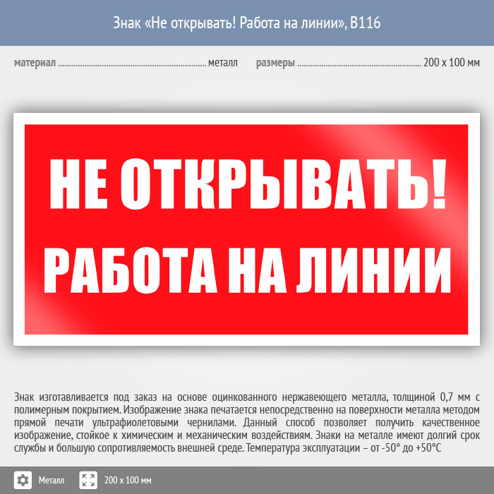 Знак «Не открывать! Работа на линии», B116 (металл, 200х100 мм) в Железнодорожном купить