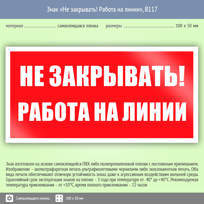 Знак «Не закрывать! Работа на линии», B117 (пленка, 100х50 мм) в Железнодорожном купить