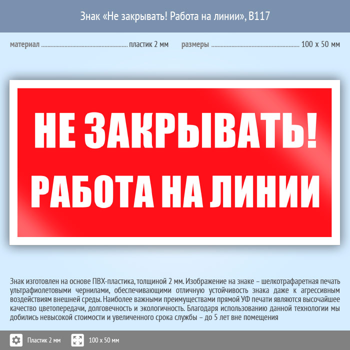 Знак «Не закрывать! Работа на линии», B117 (пластик, 100х50 мм) в Железнодорожном купить