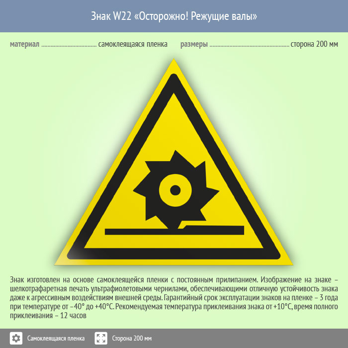 Знак W22 «Осторожно! режущие валы» (пленка, сторона 200 мм)