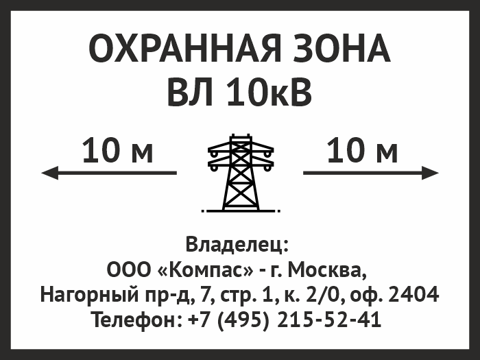 Знак «Охранная зона ВЛ 10 кВ (высоковольтной линии)», OZK-07 (металл, 400х300 мм) в Железнодорожном купить